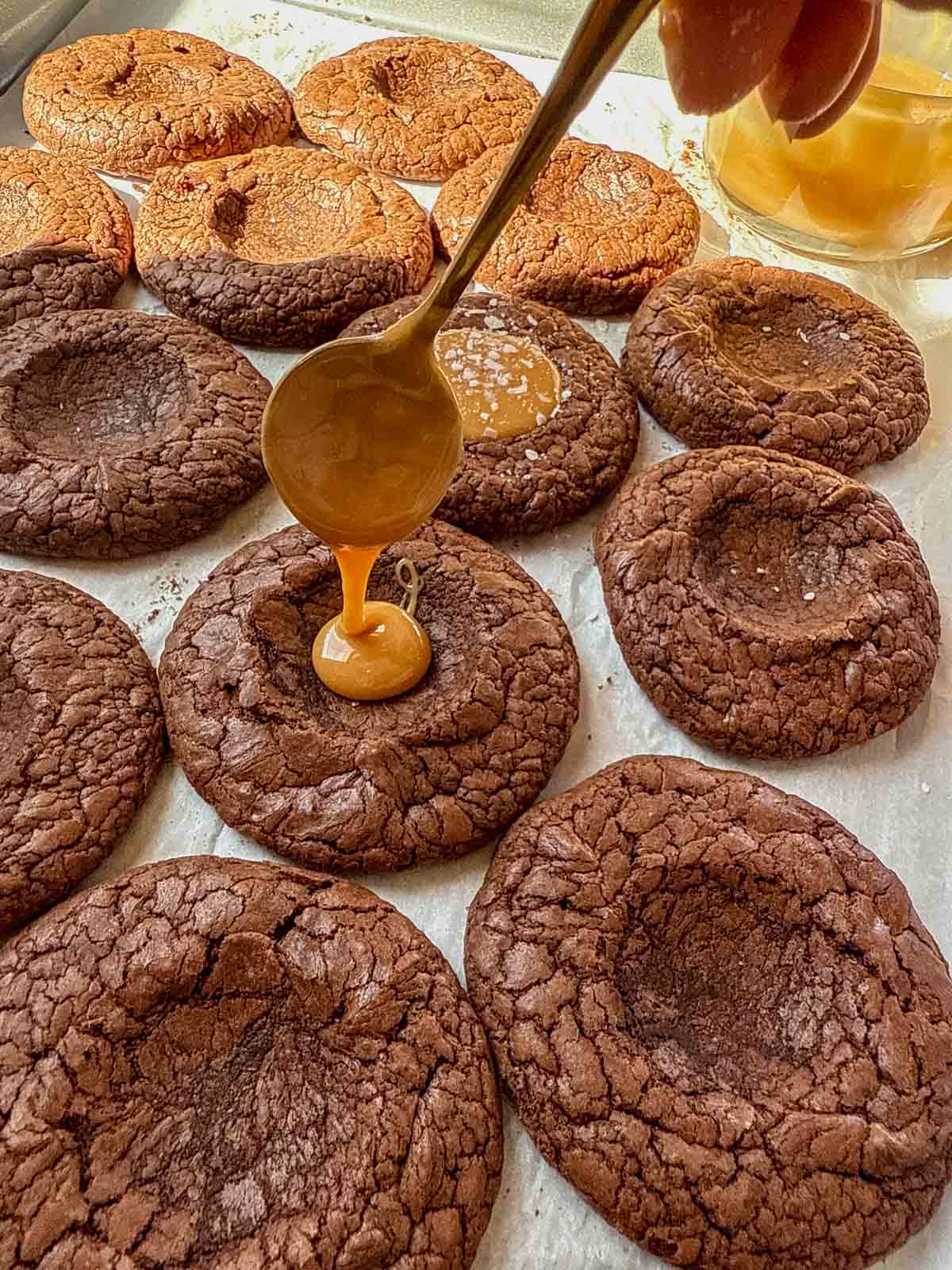 - If you aren’t a caramel fan, you could try spooning chocolate ganache, nutella, or even natural peanut butter onto the center of the cookie.